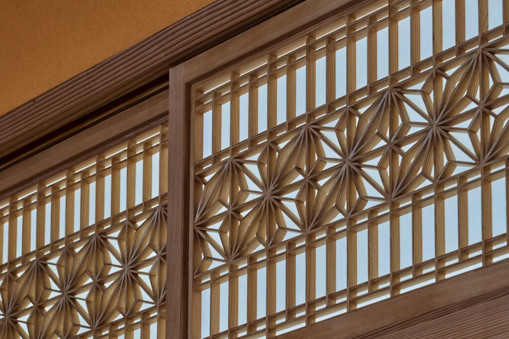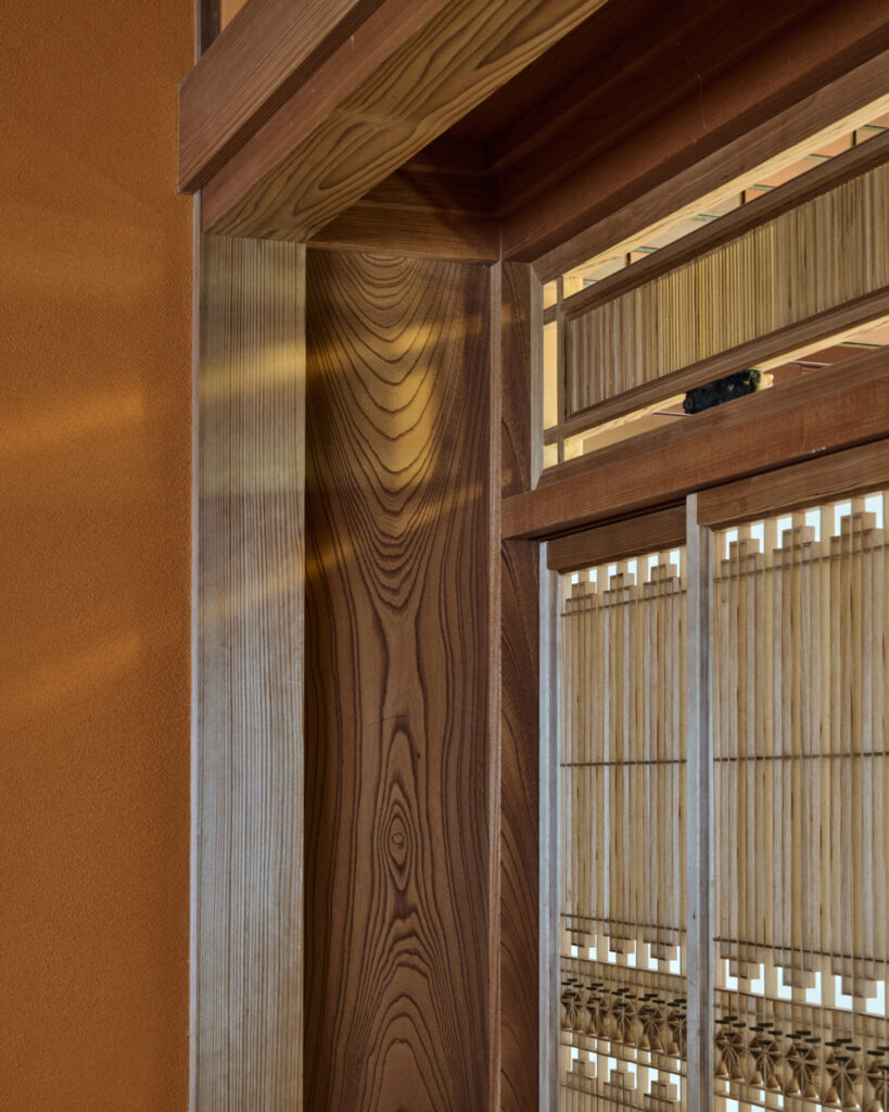 Above, the transom — carved from a single piece of wood — bears the mark of an artisan’s soul. Every beam, every fragrance of cedar and cypress, is a hymn to Fukui’s craft and the beauty of restraint.